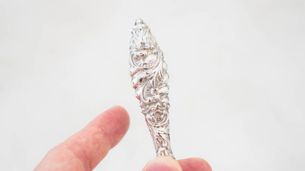 なんで作られた年数がわかるのかと言うと、イギリスの銀製品には「ホールマーク」という刻印システムがあるから。