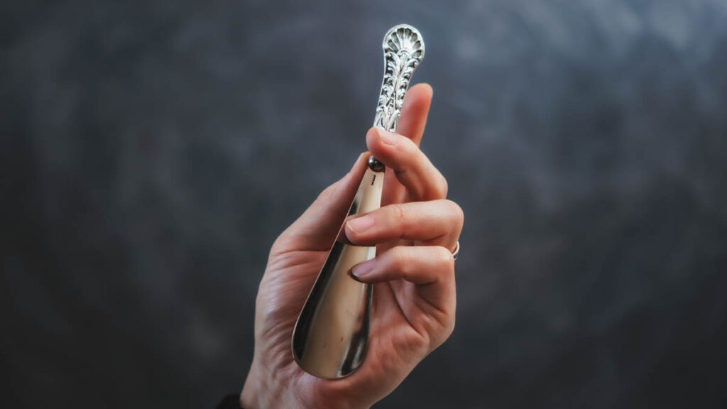 この靴べらはイギリス製のアンティークシルバーで、1906年に作られたものです。